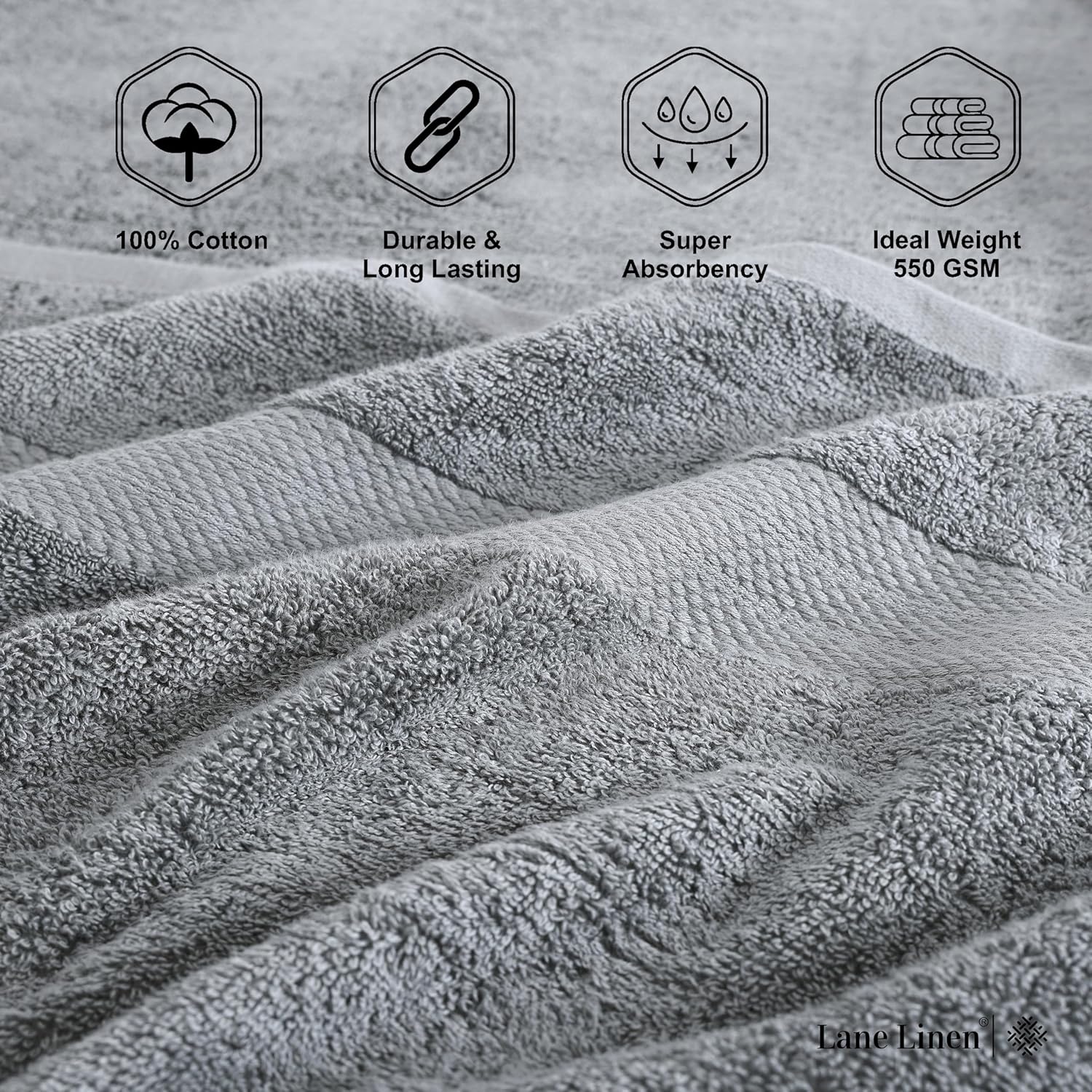 LANE LINEN 100% Cotton Luxury Bathroom Towel Set - 16 Pcs - Ring Spun, Quick Dry, Super Soft & Highly Absorbent - 4 Bath, 8 Washcloths, 4 Hand Towels - Pre Shrunk, Can be Used in Salon - Space Grey