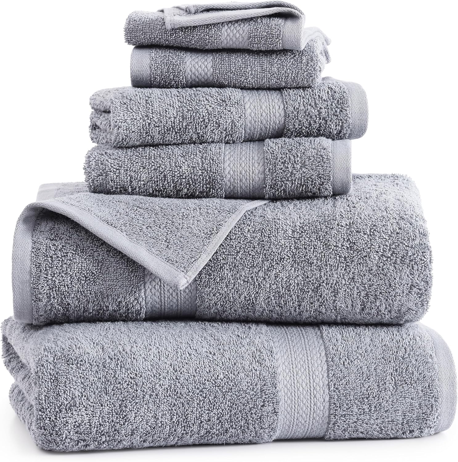 Lane Linen 100% Mercerized Cotton Luxury Bathroom Towels Set - 6 Pieces - Rin...